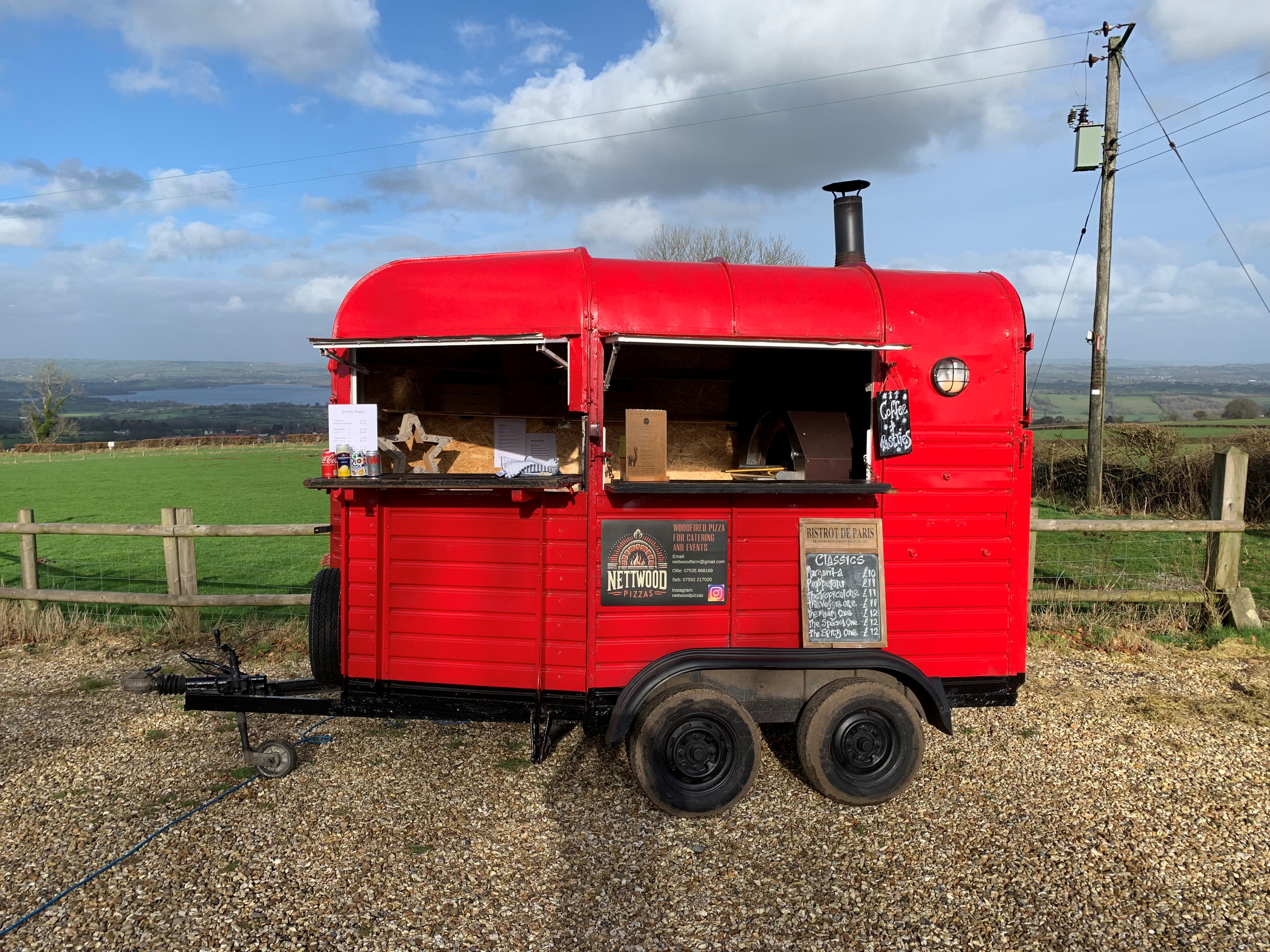 Welcome to Nettwood Pizzas, a family-operated pizza horsebox venture nestled in the heart of Somerset. Since our inception in 2021, we've passionately crafted pizza bases from scratch at our family-run campsite, using only the finest ingredients. Expanding our horizons, we're now hitting the road with our horsebox, ready to bring our culinary delights to your weddings, birthday parties, charity events, and more. Our commitment to quality pizza-making has earned us rave reviews from our community. We invite you to savour the unique taste of our woodfired pizzas, a testament to our dedication. Planning an event? We offer a pre-event site visit and invite you to join us at our campsite pizza evenings every Friday in the summer, where you can experience our hospitality firsthand. We now offer sourdough pizzas alongside our classic options, as well as a taster menu featuring a curated selection of our more experimental and gourmet creations.